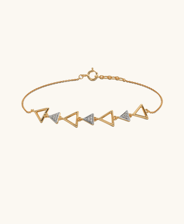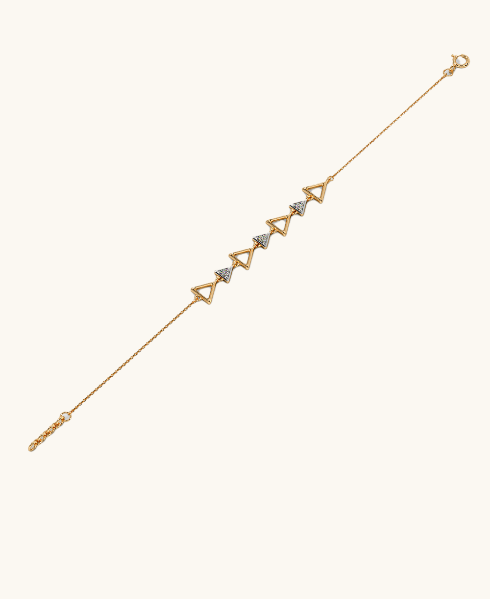 A contemporary twist in 22 karat gold, this bracelet features a striking arrangement of alternating open and textured triangle motifs. Bold yet graceful, it’s a statement in geometric elegance.
