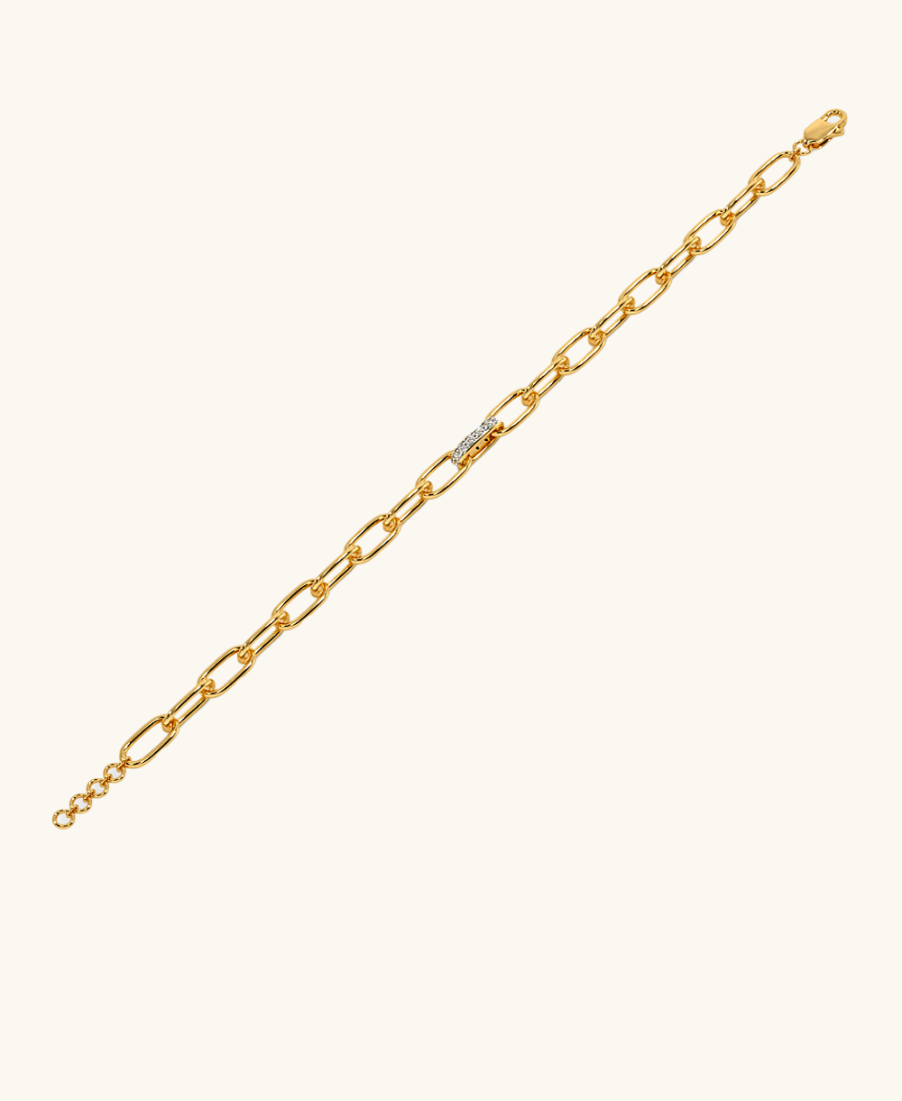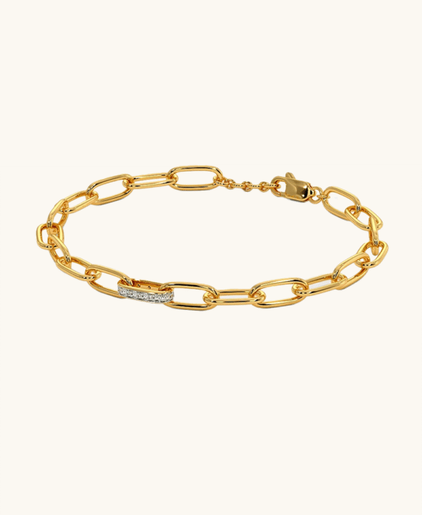 Bold in its simplicity, this 22 karat gold bracelet features elongated links highlighted by a single stone-studded bar. A contemporary classic that adds effortless edge to any look.