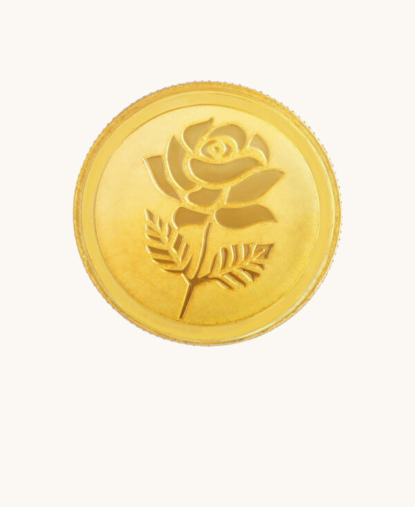 The Victoria G2 22KT gold coin showcases a bold floral motif in a smooth round frame. Its artistic design and high purity make it a meaningful keepsake and a valuable addition to your collection.